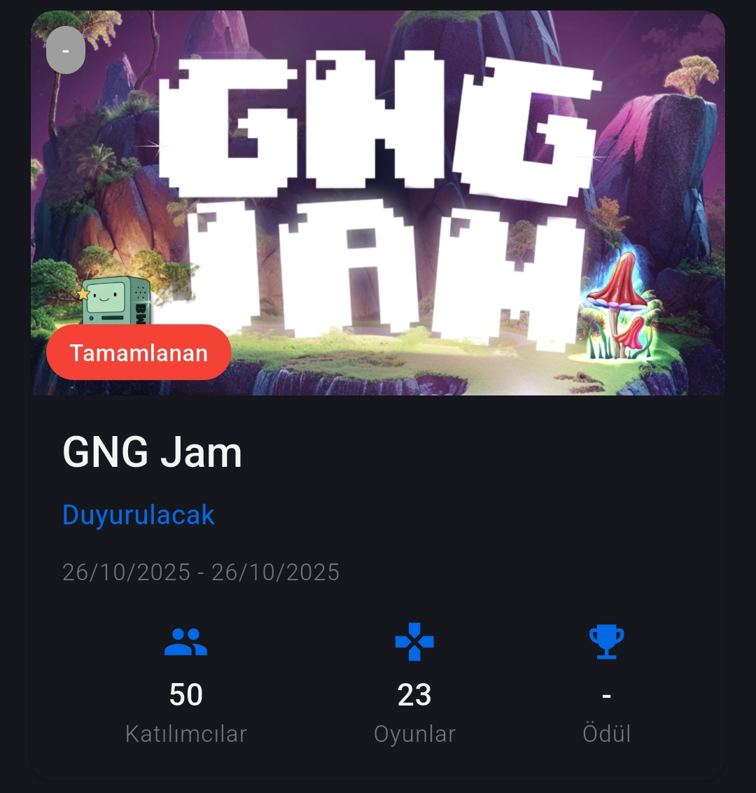 Günaydın arkadaşlar. Fiuby'de GNG Jam tamamlandı. https://fiuby.com/jams/GNG-Jam 👏